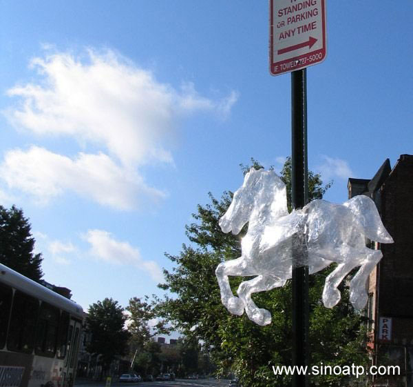 ![]() 透明膠帶另類用途:路燈柱上的駿馬 |